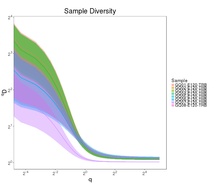 The clonal abundance distribution was calculated with confidence intervals derived via bootstrapping. The clonal diversity of the repertoire was accessed using diversity index [6]. Abundance curves are in Figure 4.8.1 and diversity curves are in Figure 4.8.2.