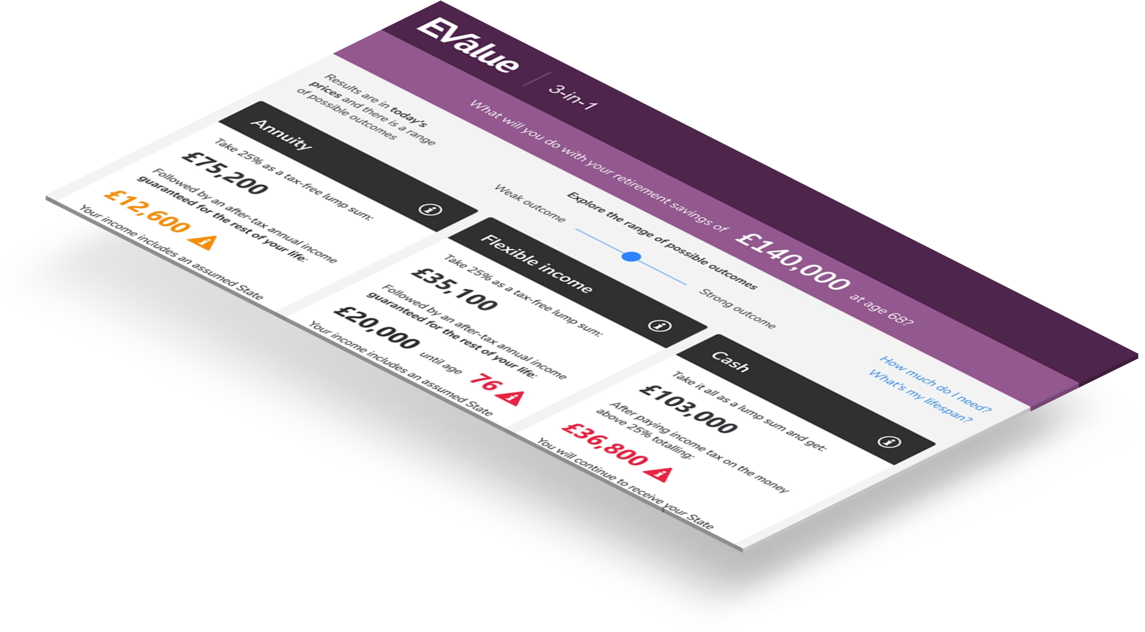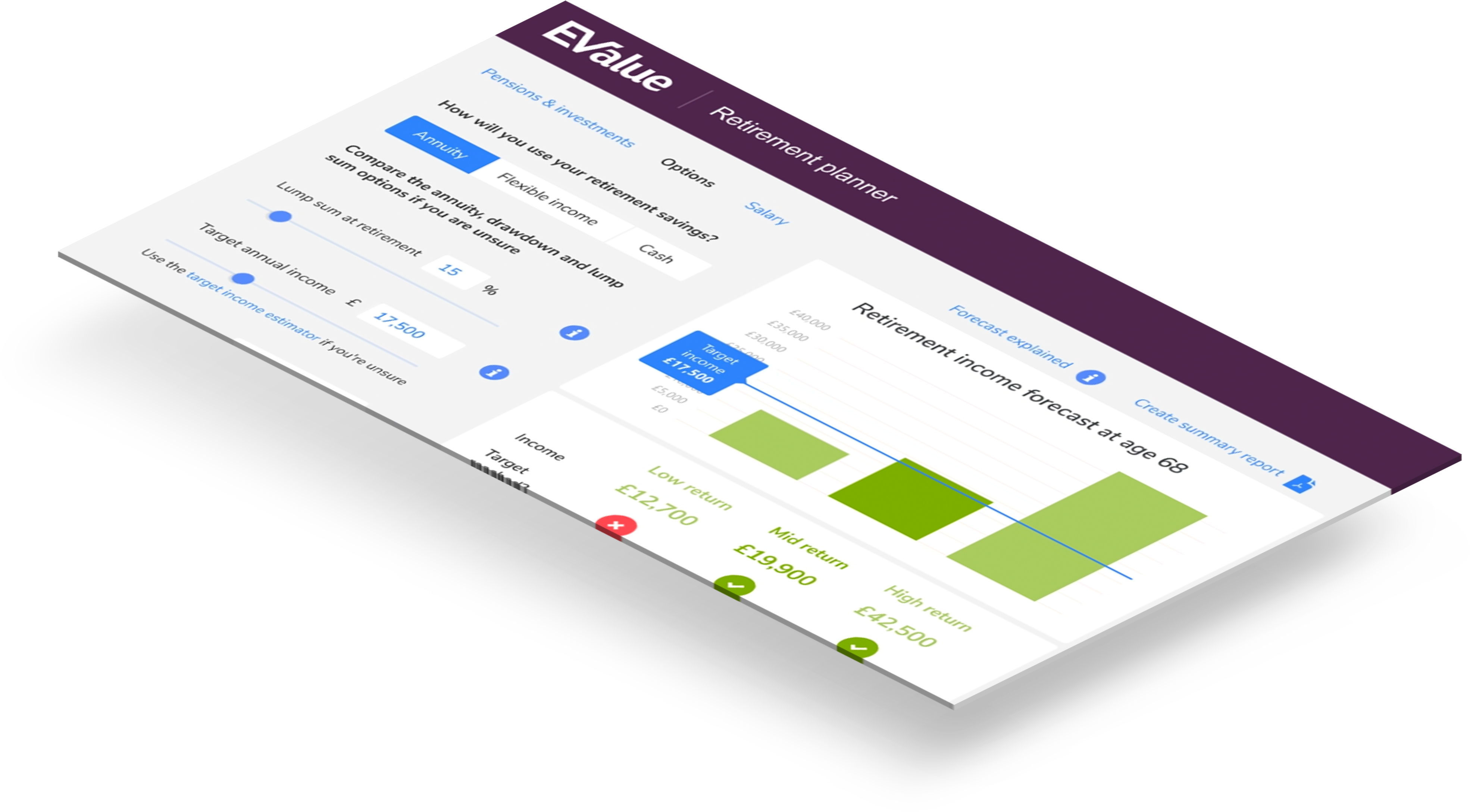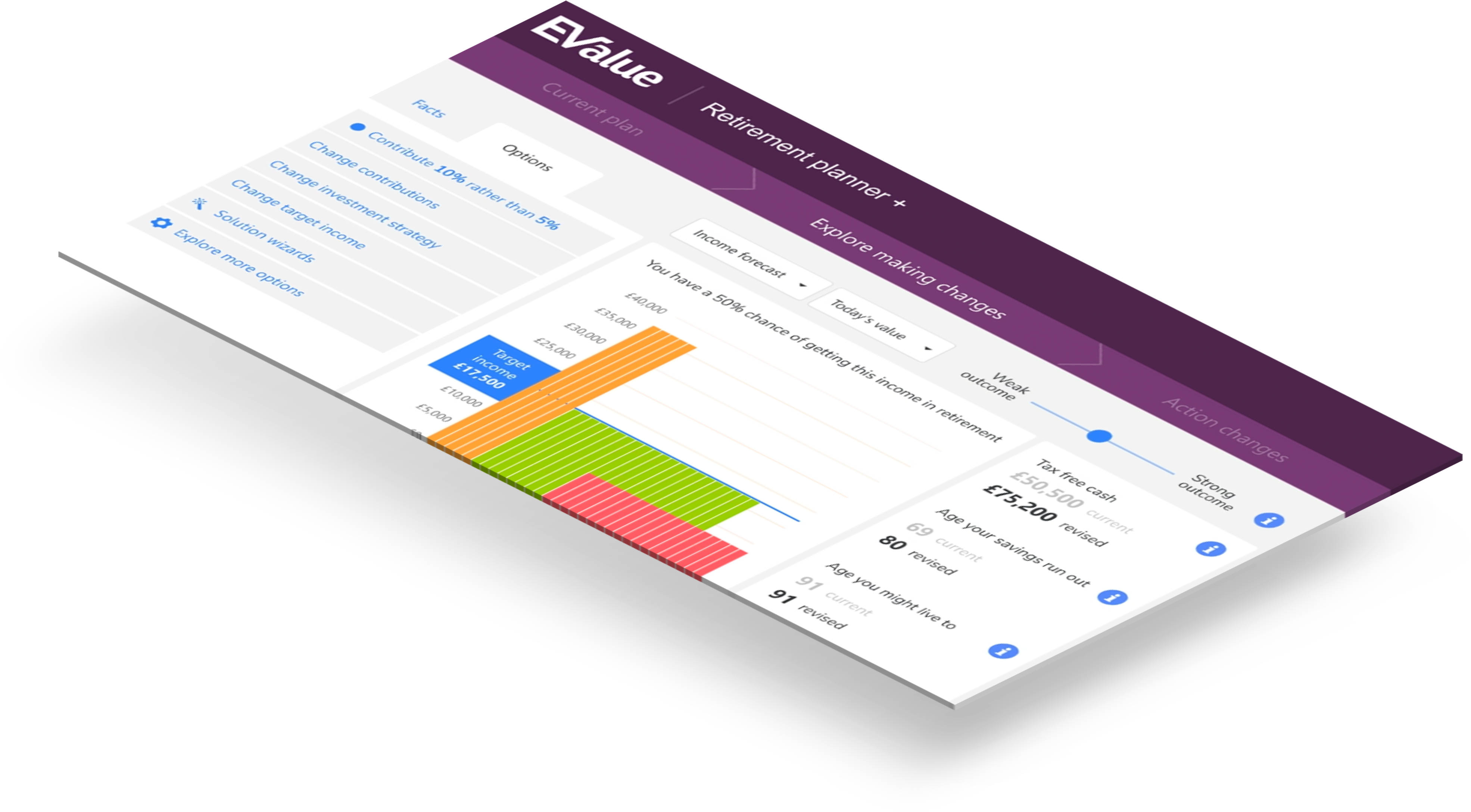 Same engine used for consumer guidance modeller, adviser tools and digital advice – so completely consistent results